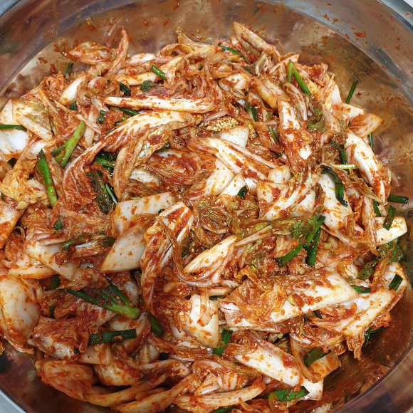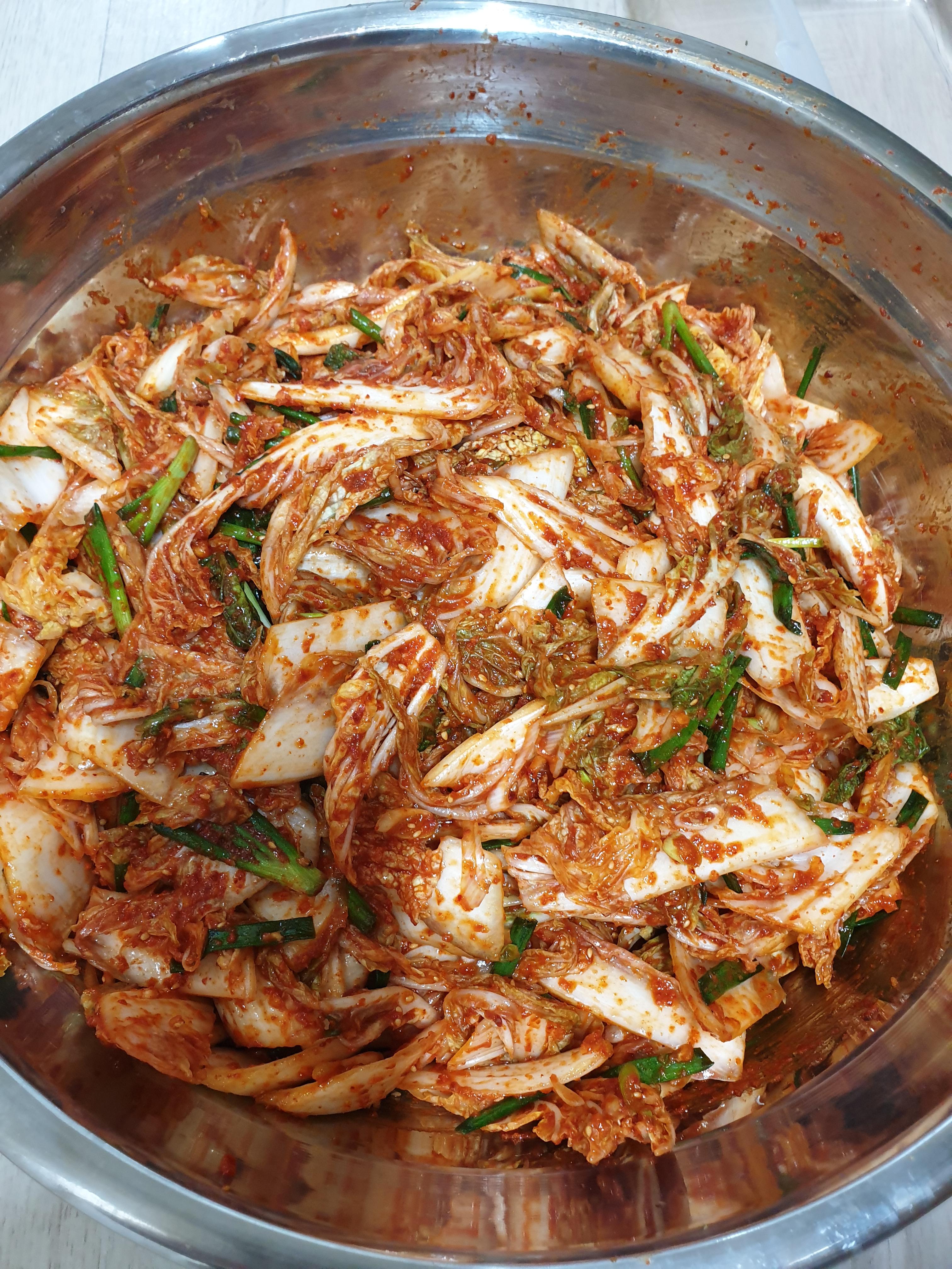 물기가 빠진 배추와 썩어놓은 양념을 잘 썩어 버무려 주세요